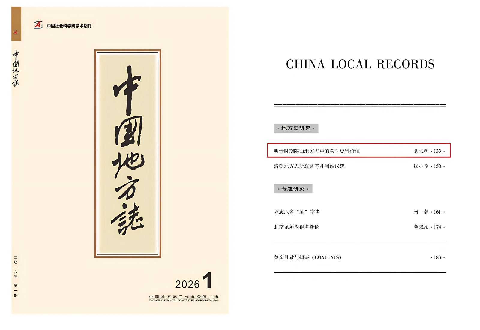 《中国地方志》刊发我们米文科教授文章