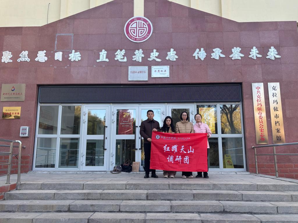 10月23日,团队兵分两路深入调研。一组前往哈密市,参观中国工农红军西路军进疆纪念馆与哈密烈士陵园,追寻中国工农红军西路军将士浴血奋战的英雄足迹,缅怀革命先烈的崇高气节;另一组奔赴克拉玛依市,先后调研了克拉玛依市档案馆、克拉玛依博物馆和克拉玛依一号井,系统梳理了克拉玛依从戈壁荒滩发展为现代化石油新城的奋斗历程,深刻体悟一代代石油人艰苦奋斗、开拓进取的创业精神。