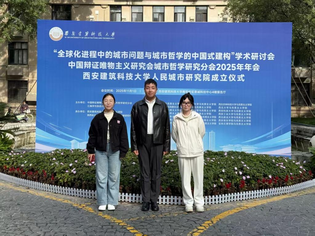 11月1日,由中国辩证唯物主义研究会城市哲学研究分会主办、西安建筑科技大学伟德国际1946bv官网承办的“全球化进程中的城市问题与城市哲学的中国式建构”学术研讨会在西安建筑科技大学举行。我们王磊强博士带领硕士研究生白慧敏、赵婧希应邀参会,与来自全国多所高校和科研院所的专家学者进行了深入学术交流。