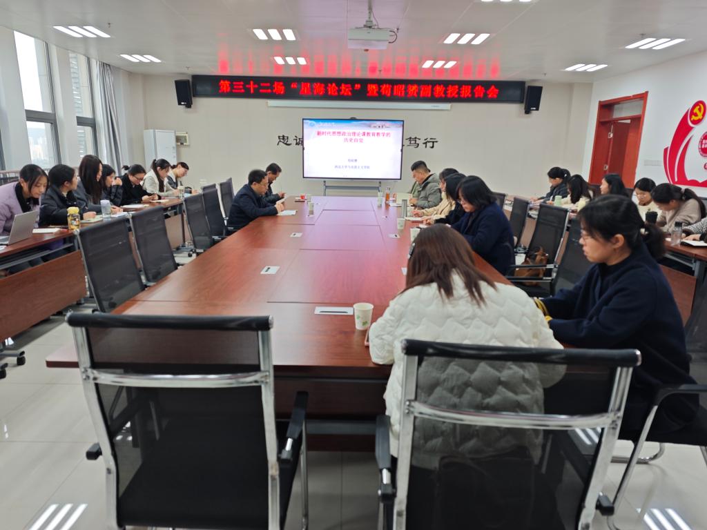 11月12日,我们在高新校区博文楼1201会议室举办第三十二场“星海论坛”学术报告会,邀请全国高校优秀思想政治理论课示范课百人巡讲团成员、全国高校思想政治理论课骨干教师研修班授课专家、西北大学伟德国际1946bv官网苟昭赟副教授为我们师生作题为《新时代思政课教育教学的历史自觉》的学术报告。副院长米文科主持报告会。