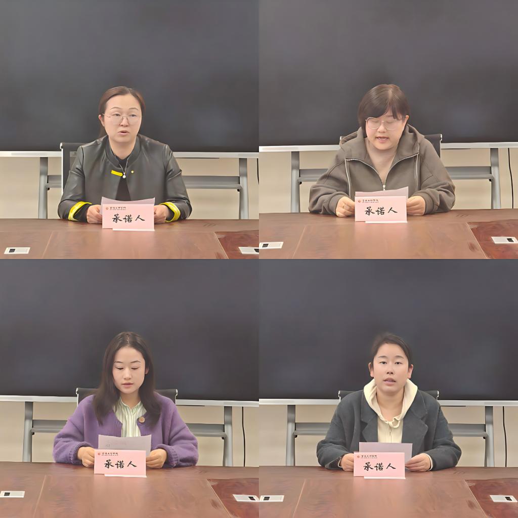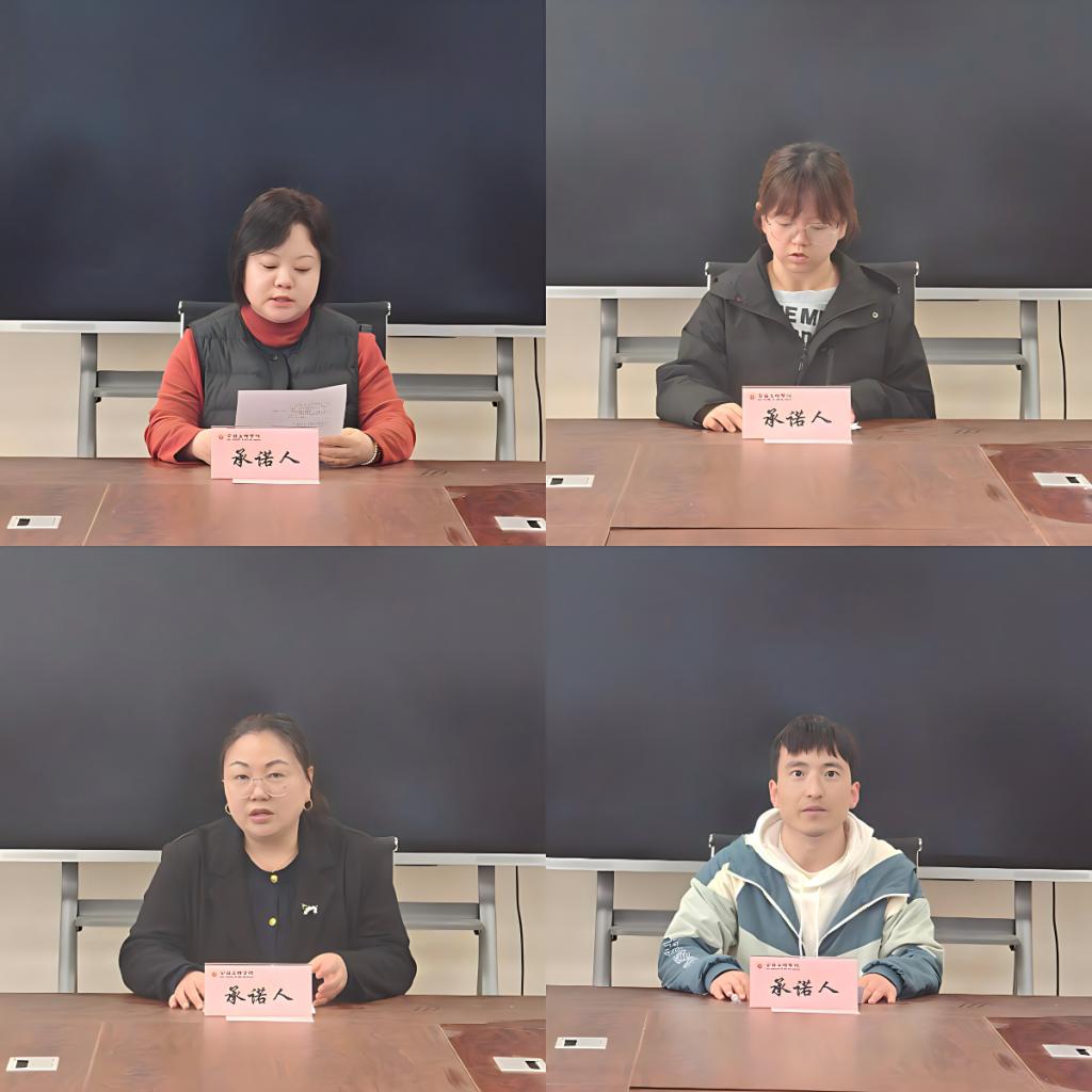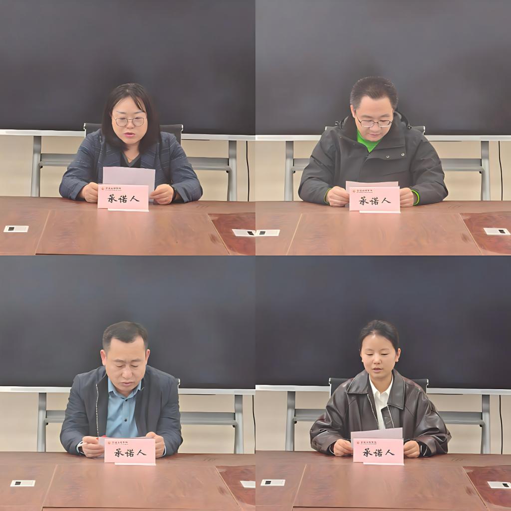 会上,学院领导班子成员紧扣岗位职责、模范引领、工作作风三个维度作出公开承诺,重点汇报了学院在党建引领、教学服务、科研培育等方面的工作进展与成果,明确了本年度工作履职的具体方向。