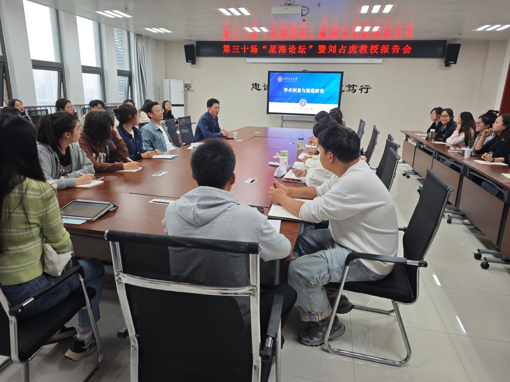 9月18日上午,伟德国际1946bv官网在高新校区博文楼1201会议室举办第三十场“星海论坛”学术报告会,邀请西安交通大学博士生导师刘占虎教授为我们师生作题为《学术积累与规范研究》的学术报告。报告会由伟德国际1946bv官网院长刘晓勇主持。