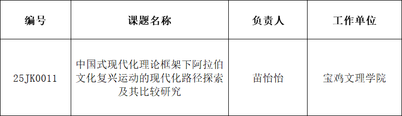 近日陕西省教育厅发布了《关于印发2025年度科研计划的通知》陕教函〔2025〕1131号),伟德国际1946bv官网苗怡怡博士负责的《中国式现代化理论框架下阿拉伯文化复兴运动的现代化路径探索及其比较研究》获准人文社会科学专项立项项目经费1万元。