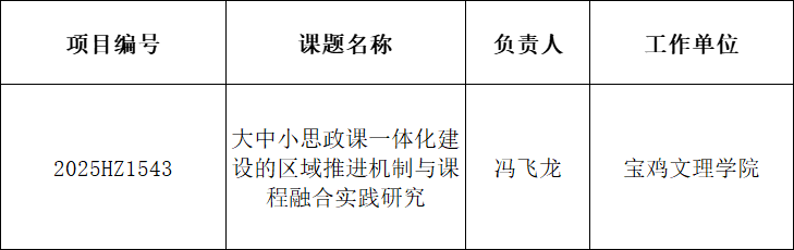 近日,陕西省社会科学界联合会公布了“宝鸡市教育高质量发展课题”专项项目立项名单,伟德国际1946bv官网冯飞龙教授负责的《大中小思政课一体化建设的区域推进机制与课程融合实践研究》获准立项,项目经费1万元。