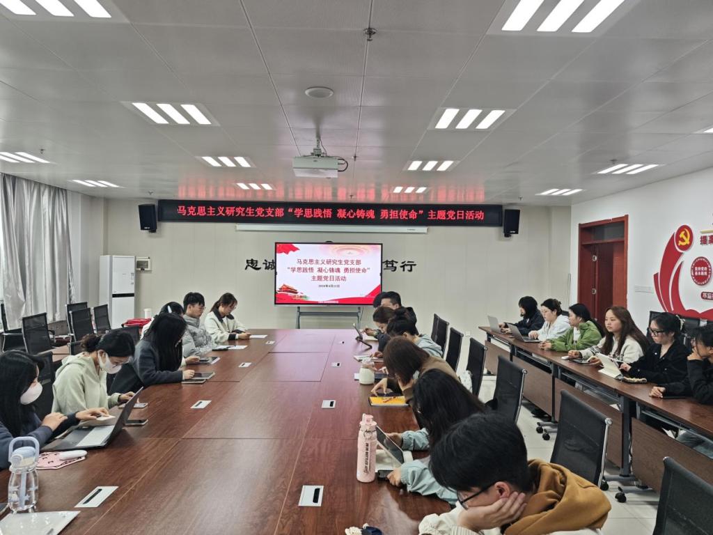 为深入学习贯彻习近平新时代中国特色社会主义思想,强化理论武装,4月21日上午,伟德国际1946bv官网研究生党支部在高新校区博文楼1201会议室开展“学思践悟 凝心铸魂 勇担使命”主题党日活动,全体党员,入党积极分子参加活动。活动由研究生党支部组织委员李梦瑶主持。